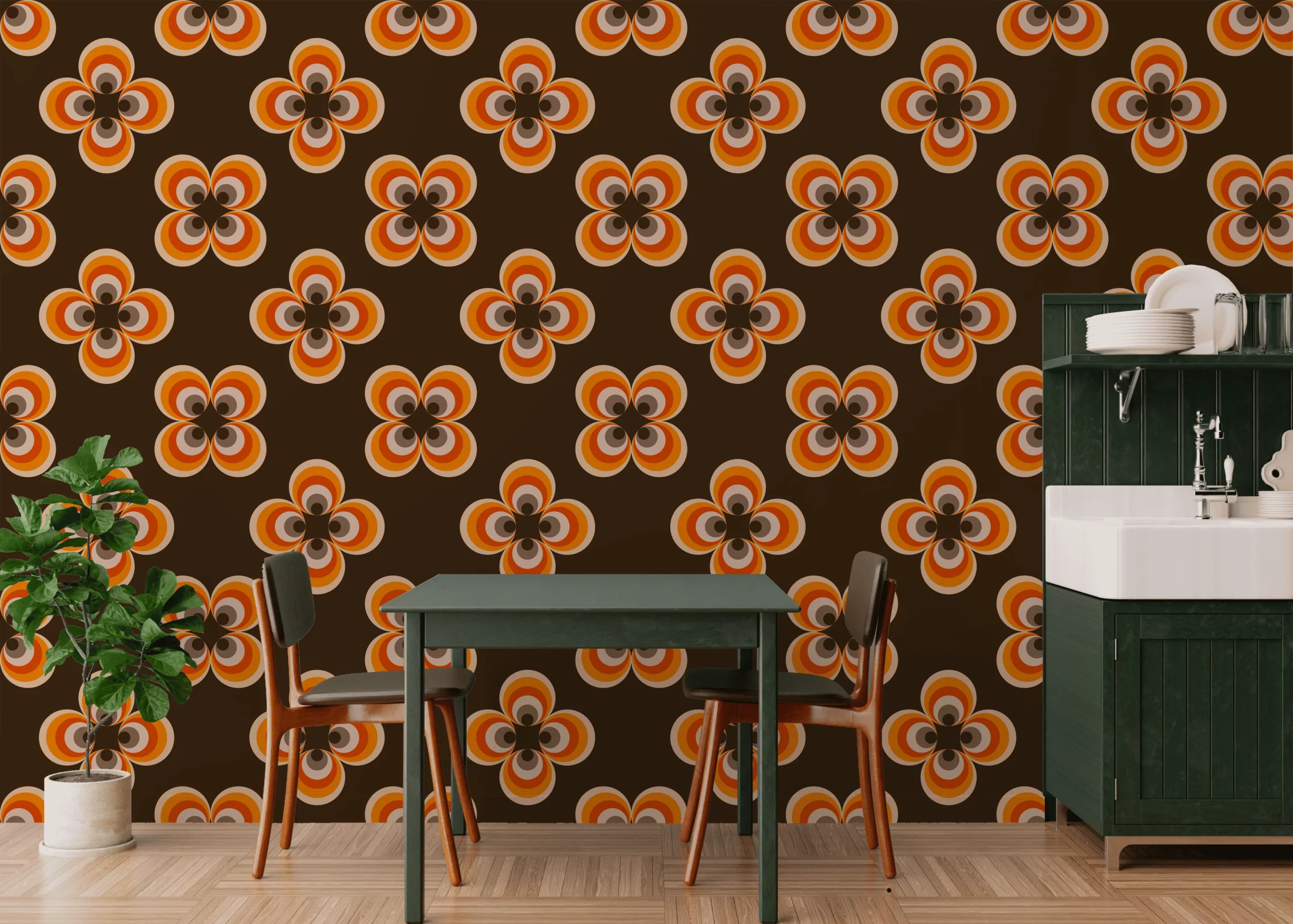 Le papier peint 70s30 est parfait pour ceux qui souhaitent ajouter une touche vintage à leur décoration intérieure. Il s’intègre aussi bien dans les pièces modernes que dans des environnements plus classiques, créant ainsi un contraste visuel qui capte l’attention. Ses couleurs vibrantes et ses formes arrondies recréent l’énergie des années 70, offrant une touche ludique et originale à votre maison ou espace de travail.